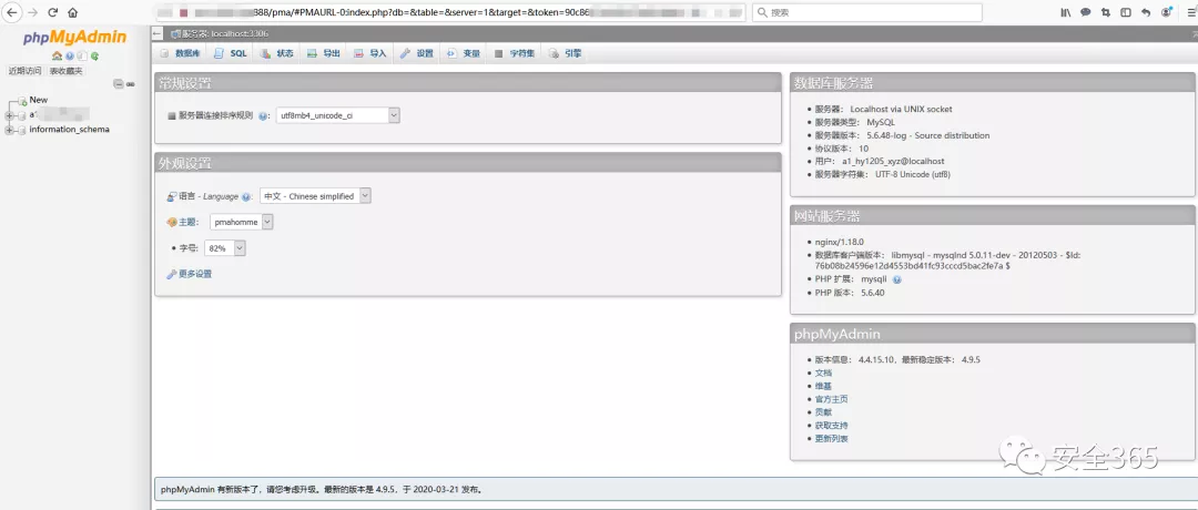 安装了 phpmyadmin。(其他版本不影响)