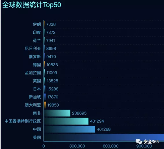 全球范围内分布情况如下(仅为分布情况,非漏洞影响情况)