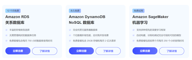 除此之外,如果我们有注册亚马逊云科技中国网站的企业用户,还有资格获取到几十款+的云服务器,比如轻量服务器、RDS数据库、CDN加速、S3对象存储等等云产品的体验,有的是1-3个月免费的,也有是一年免费,更有一些还永久免费的。