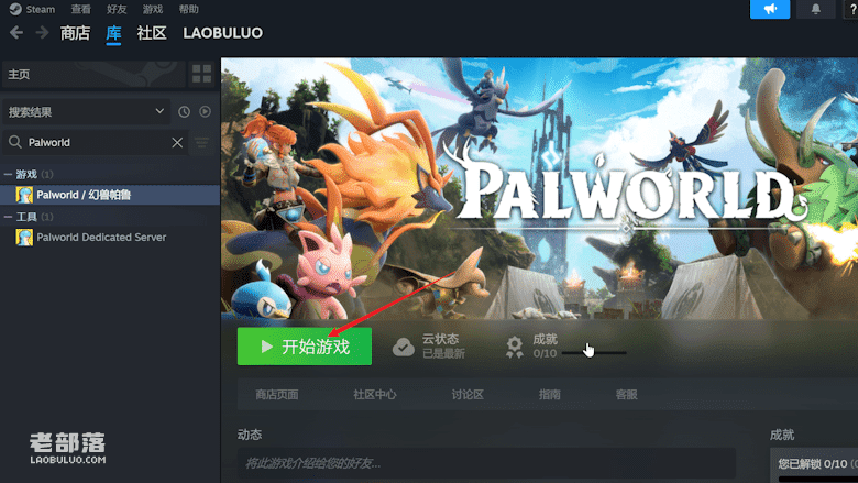 这里有个小技巧,如果无法启动的话,我是通过在库中搜索 Palworld,然后看到 Palworld Dedicated Server 也安装一遍就可以登录启动。