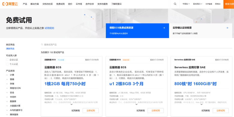 我们可以看到有特定的ECS云服务器免费体验三个月。