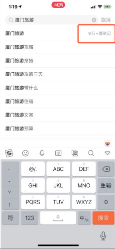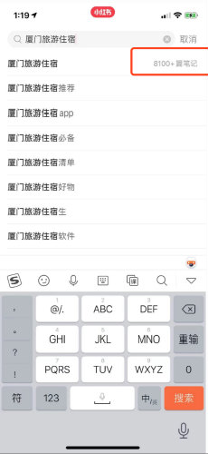 但是我们发现厦门旅游这个词下面笔记太多,我们新手进行笔记排名优化难度很大。我们就要找他的下拉词(长尾词),例如下面有个厦门旅游住宿,笔记数只有8100,那么就把这个词多在笔记里面铺设一些,让笔记收录在这个词里面(最新里面可以看到)