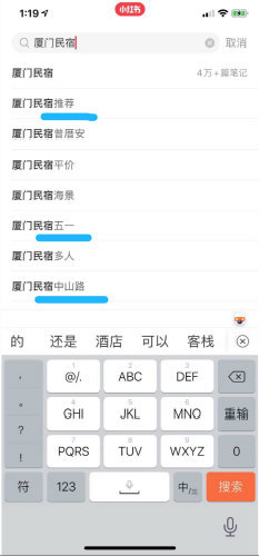 我们再精细化的来看,民宿是4万+笔记数,但我们结合时效词(五一)、地点(中山路)、长尾词(推荐、平价),那么下面的笔记就会少很多。