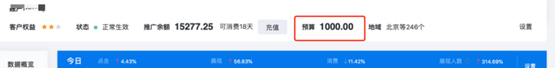 推广预算的设置可以帮助企业控制消费,日预算的多少依据企业月预算或年预算去分配,当消费金额大于预算时,账户自动下线并停止推广。