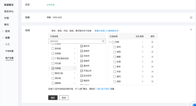 推广地域的设置可以让企业做到”指定地域的人群才能看见广告“。例如,企业推广地域设置为”河南省“,那么只有河南IP下的网民才有机会看到企业的推广信息,其他地区的网民则无法看到。