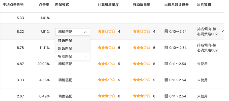 关键词匹配模式可以分为三大类:精确匹配、短语匹配、智能匹配。