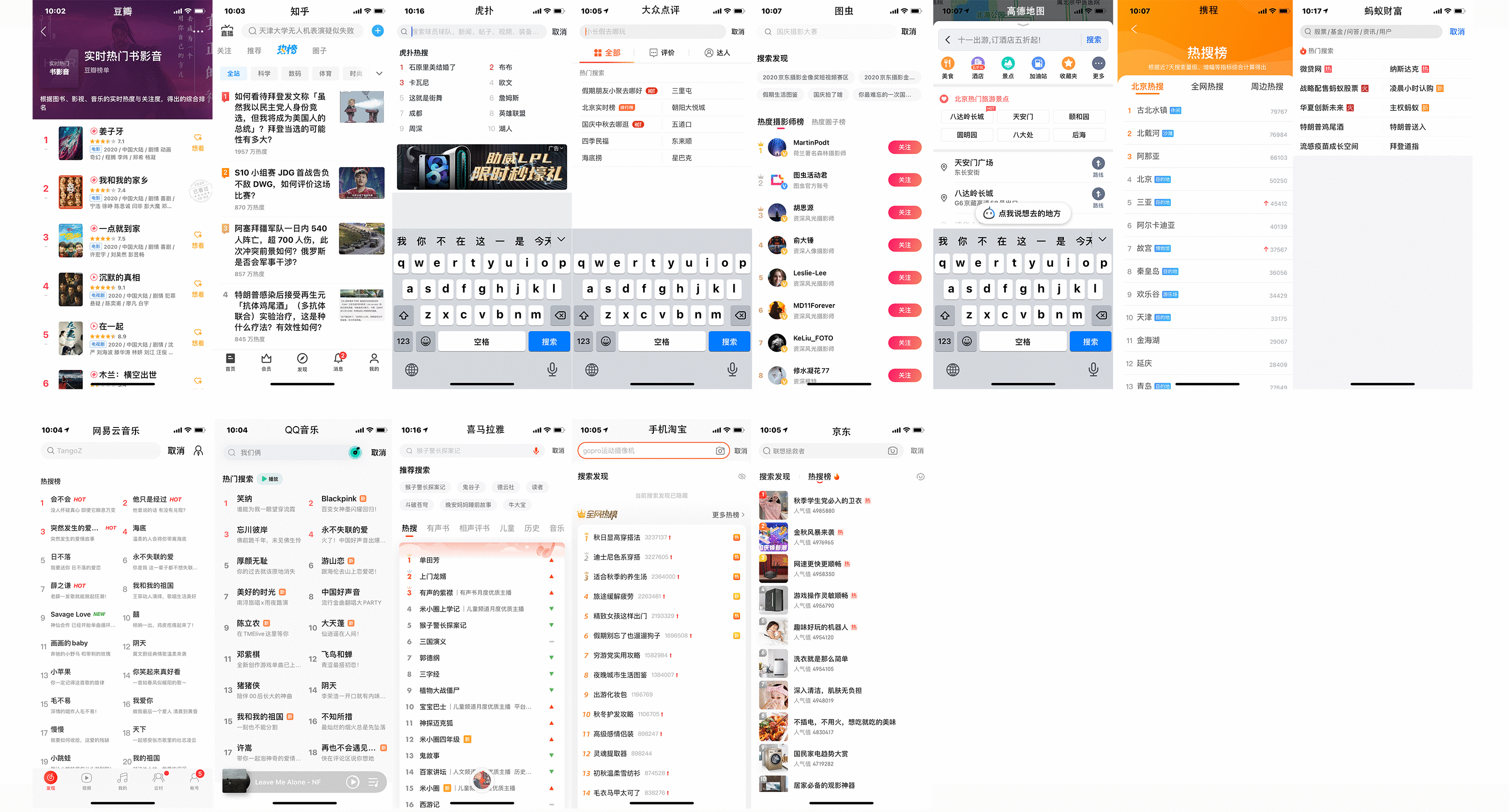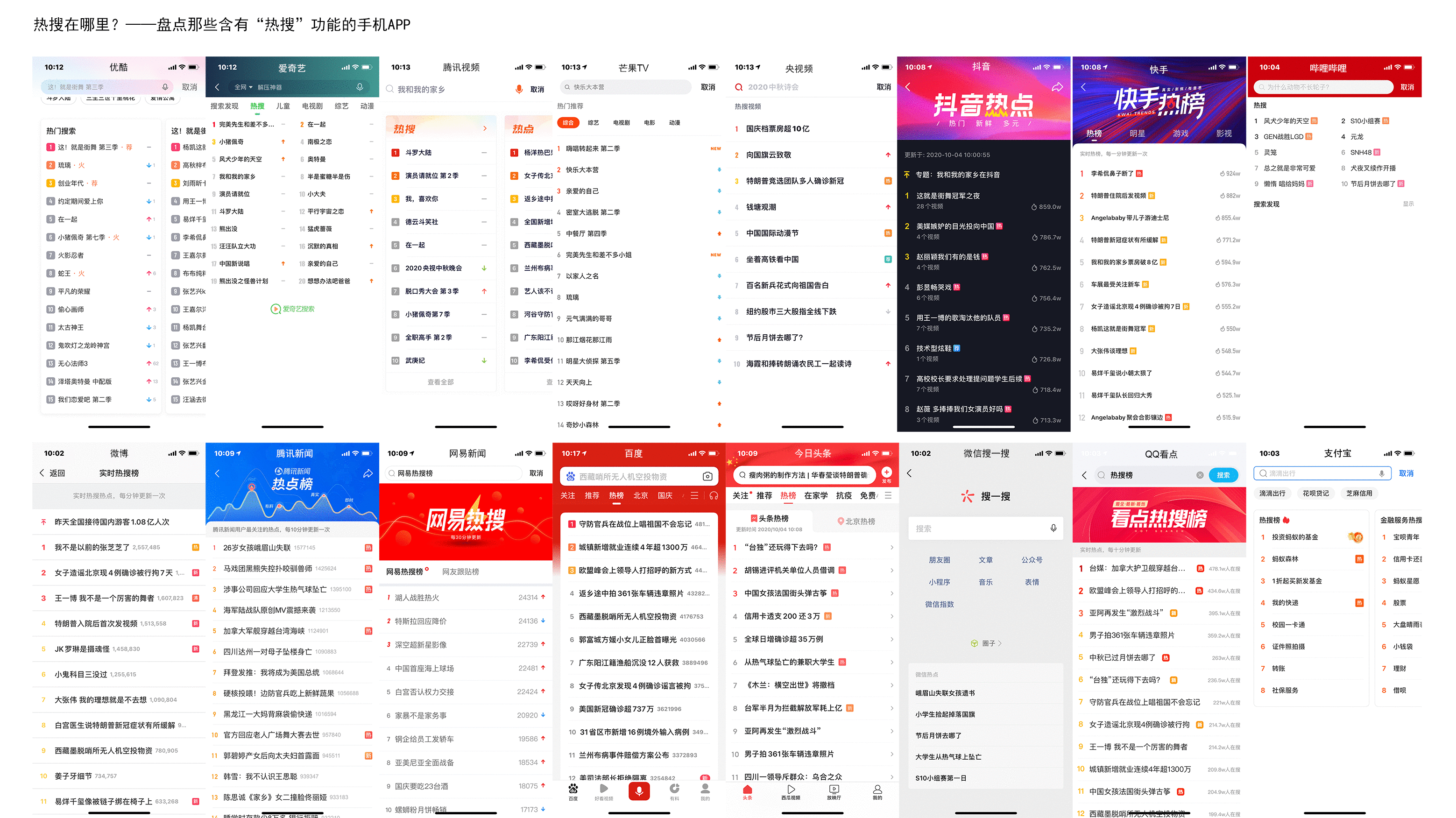 无论是微博头条,还是豆瓣知乎,无论是优爱腾芒,还是抖快B站,甚至各大音乐、电商、本地生活、交通出行、金融支付等平台,都慢慢地开始做起了热搜这门生意。