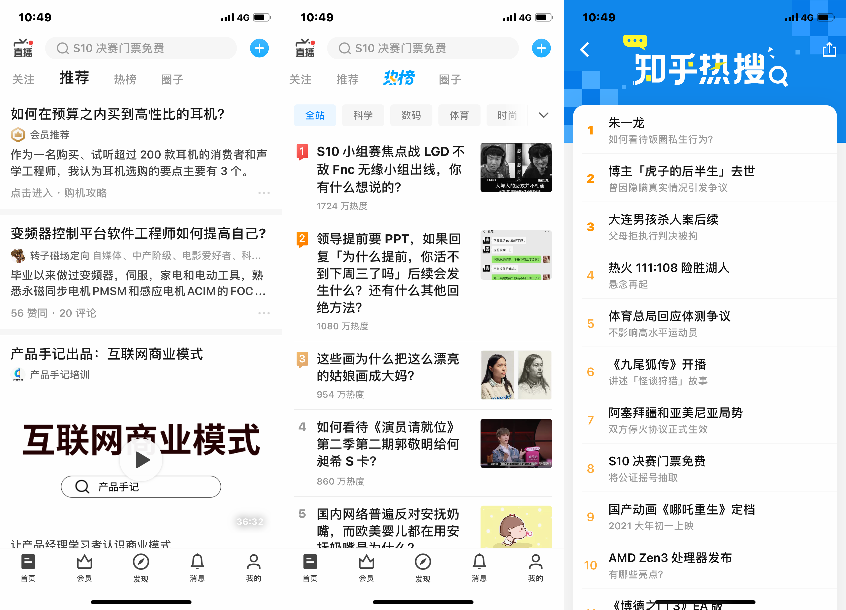 知乎的推荐、热榜、热搜页面