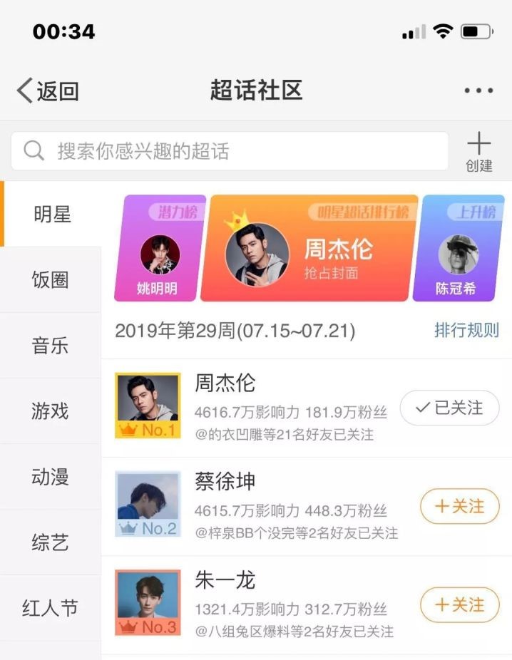 周杰伦在超话上超过蔡徐坤