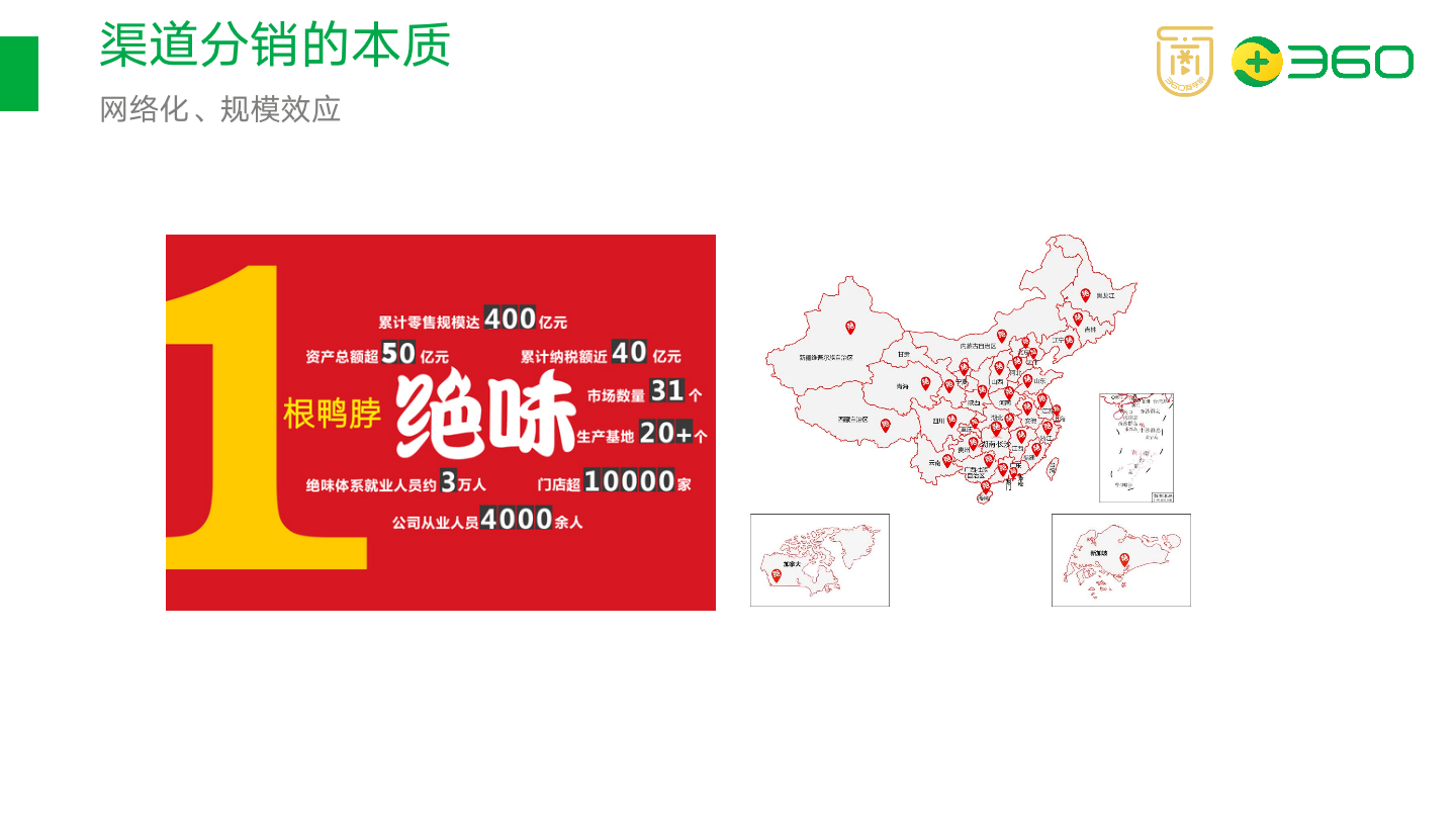 绝味则早早明确了连锁加盟的思路,中央工厂生产、冷链统一配送,营销上高举高打,店面铺遍三四线城市,靠着价格便宜量又足吸引消费者,走的是“农村包围城市”的道路。