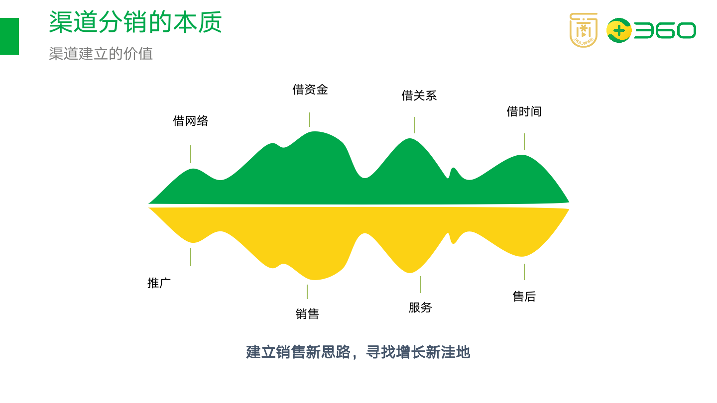 时间创造价值,但现实的情况是我们企业的发展时间成本和机会成本是很高的,牵一发动而全身。建立起自己的渠道销售网络可以“借网络、借资金、借关系、借时间”。