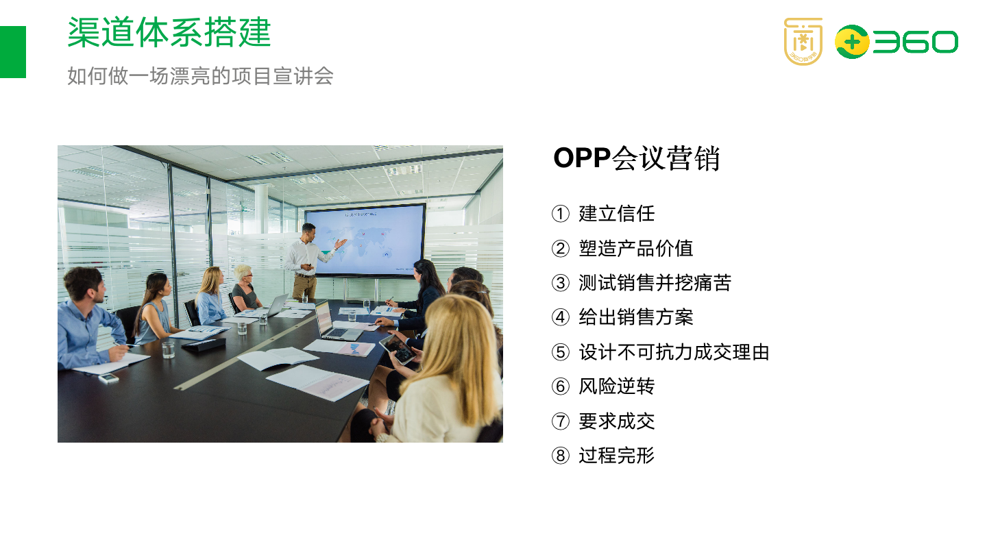 招商会是会议营销的一种,也称为OPP营销,OPP营销一般包含8个部分。