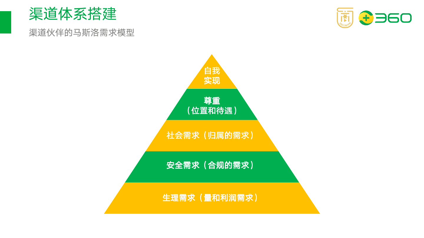 我们来看一看,渠道伙伴的马斯洛需求理论:
