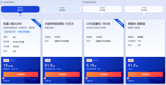 这里我们可以看到现在秒杀活动更为倾向于云产品,而不是云服务器。