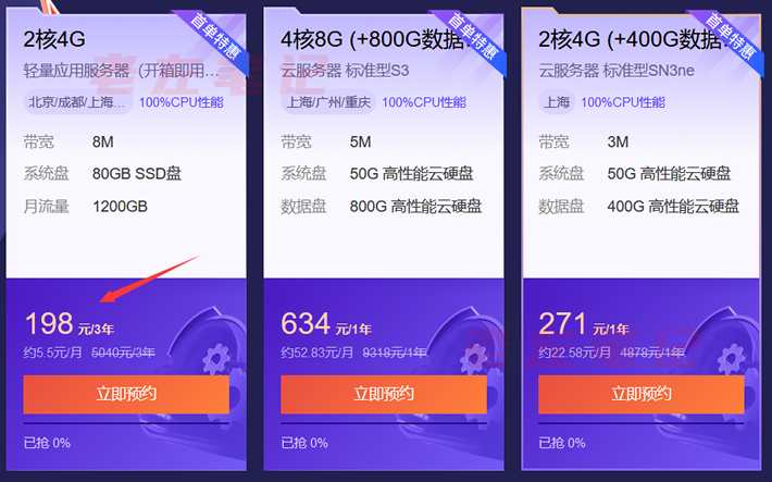 但是,老左个人喜欢这个198元三年的配置。1200GB流量、8M带宽4GB内存。