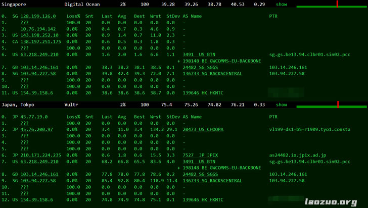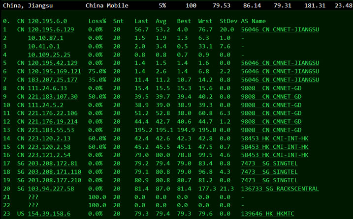 这里我们看看新加坡路由去程。我们国内的三个节点都是一般线路。