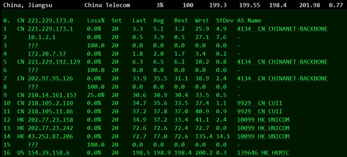 这里我们习惯的看看国内电信移动和联通的路由去程。