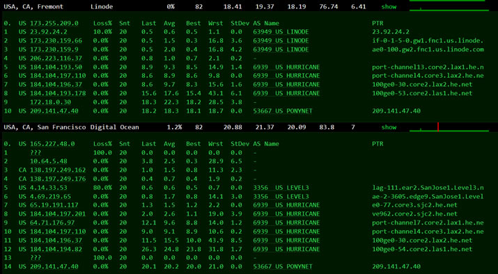 简单看几个美国节点的去程。