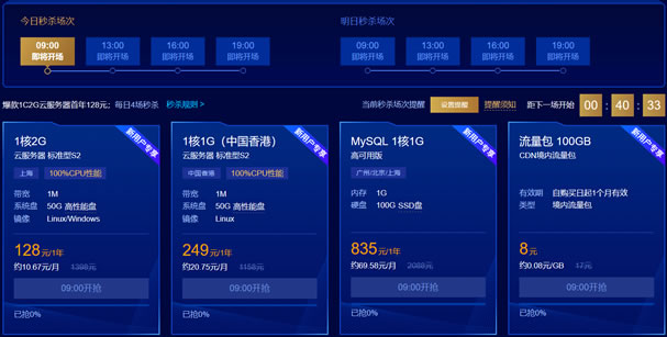 每天有四场秒杀活动,基本上套餐都差不多的轮换。活动力度是不错的,建议我们长期建站就选择三年套餐,因为要珍惜三年新账户机会。