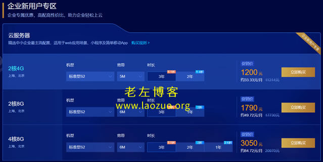 如果我们是有企业资格的账户,当然也需要新账户可以选择云服务器比个人还便宜。比如老 左(LAOZUO.ORG)建议选择三年套餐。