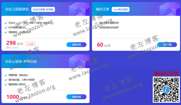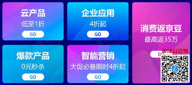 前天老 左有分享到腾讯云率先发布今年双十一云计算产品大促的活动(查看这里),目前国内的主流互联网公司都有涉足这一领域可谓竞争激烈。京东云商家老 左(LAOZUO.ORG)一直没有接触主要是嫌弃他们的产品太过于单调,后来好像进行重新的定位包装,目前产品在生态上效仿同行还是有模有样的。这次双十一活动期间也发布他们的年终采购季活动。