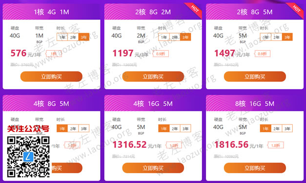 同时还有秒杀活动,比如2核心4G1M服务器年付229元,以及2核8G1M服务器0元秒杀等,具体我们看看自己需要的。以后如果有其他商家大促活动LAOZUO.ORG博客还会继续分享。