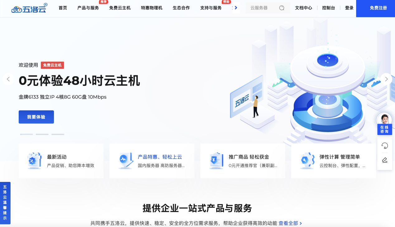 五洛云是一个提供云计算服务的平台,主要为企业提供快速、稳定、安全的全方位需求服务。其主要特点包括弹性计算、多样化配置、安全的网络和简单的管理。产品与服务涵盖弹性云ECS、高防BGP物理机、宝塔面板和金牌6133等。选择五洛云的理由在于其提供弹性升级的企业上云服务,拥有安全有效的解决方案,为用户的云上旅程保驾护航。