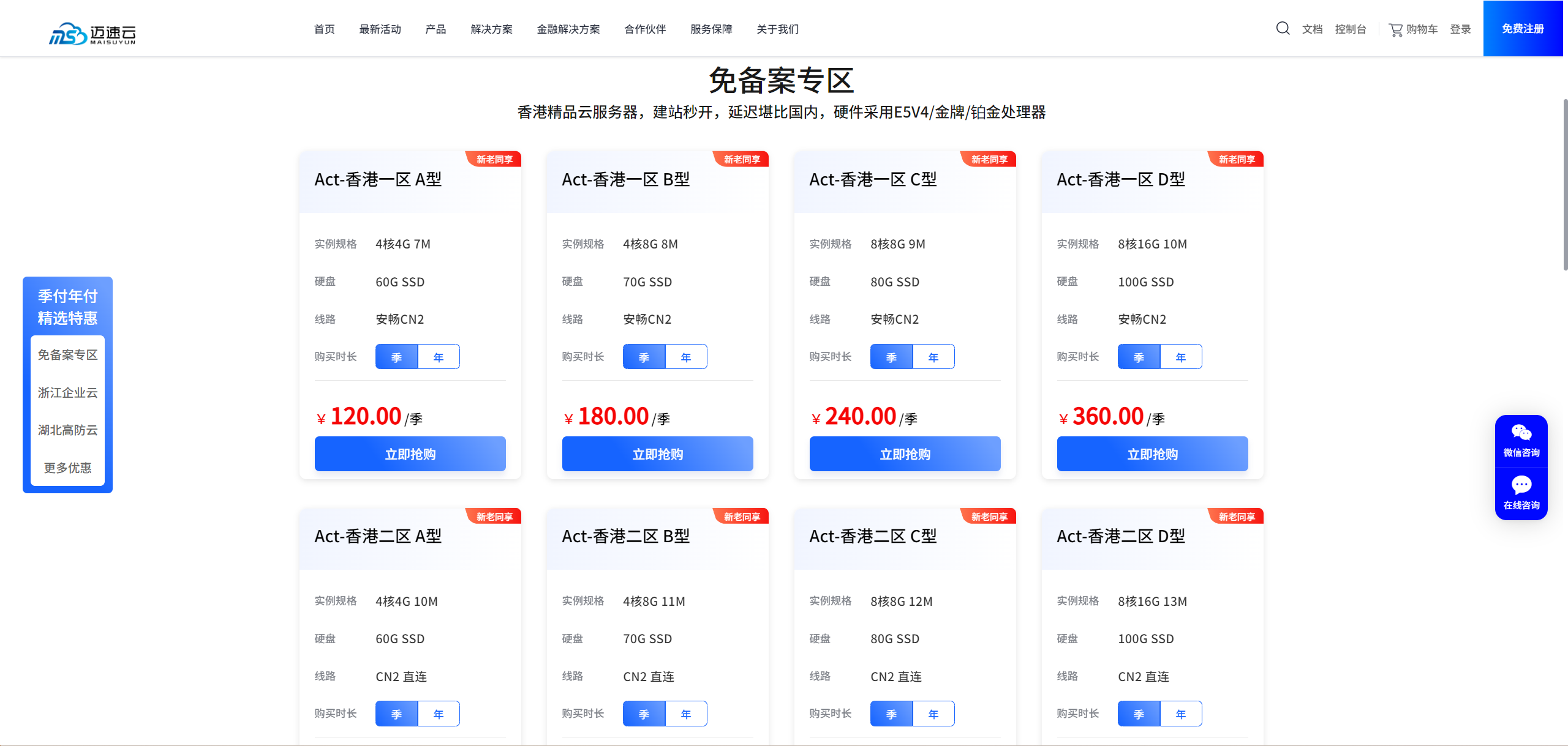1. 香港/美国/十堰/宁波 季付年付优惠 最低3折