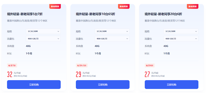 以及我们可以看到还支持批量购买的适合新老客户的多台数的套餐。