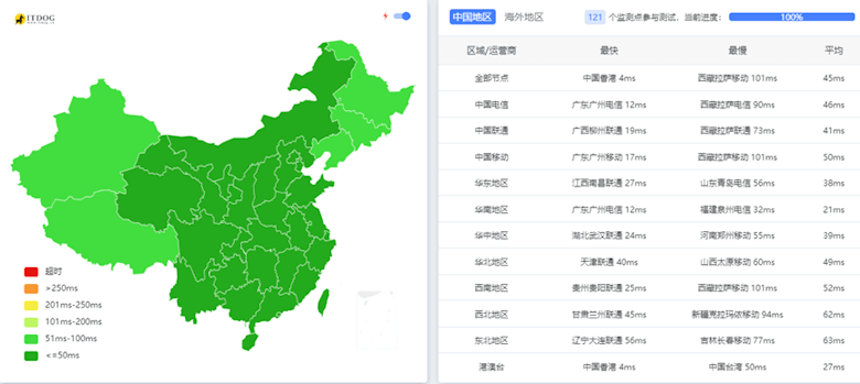 国内三网延迟都非常低。
