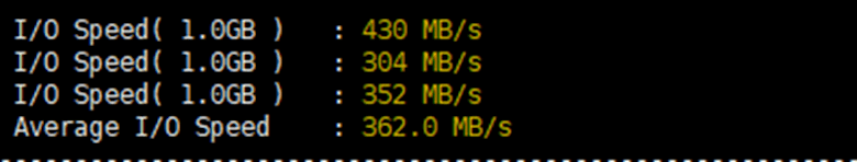 磁盘IO测试,还是不错的(平均值为362.0 MB/s)