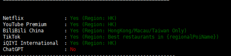 测试IP为香港原生IP,解锁众多流媒体