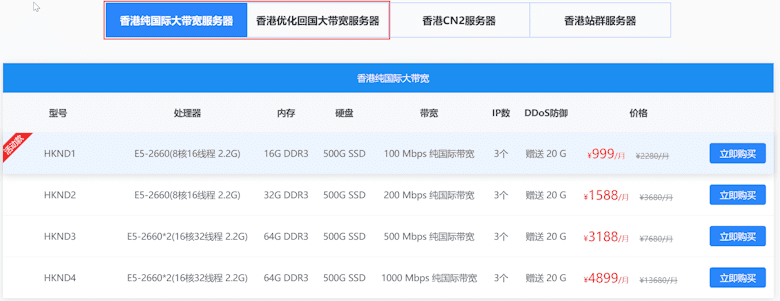 | HKND2 | E5-2660 | 32G | 500G | 200M国际 | 20G | 1588/月 | 链接 |