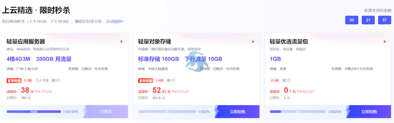 秒杀活动都是有限量的,我们可以等待活动倒计时开始的是选择低至年付38元的轻量服务器。