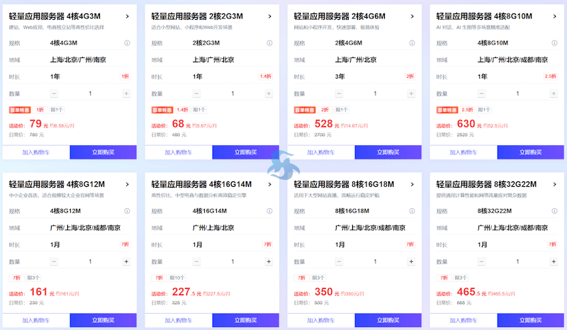 专属的轻量服务器活动,我个人喜欢188和199的这个套餐。