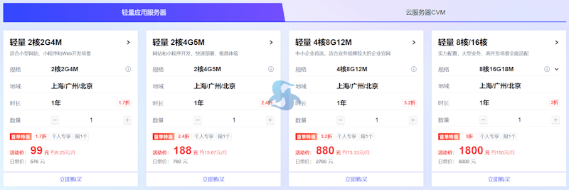 如果需要CVM云服务器的,这次也是有活动的,但是对于入门级业务个人更喜欢轻量服务器,CVM云服务器注意是否需要公网IP。
