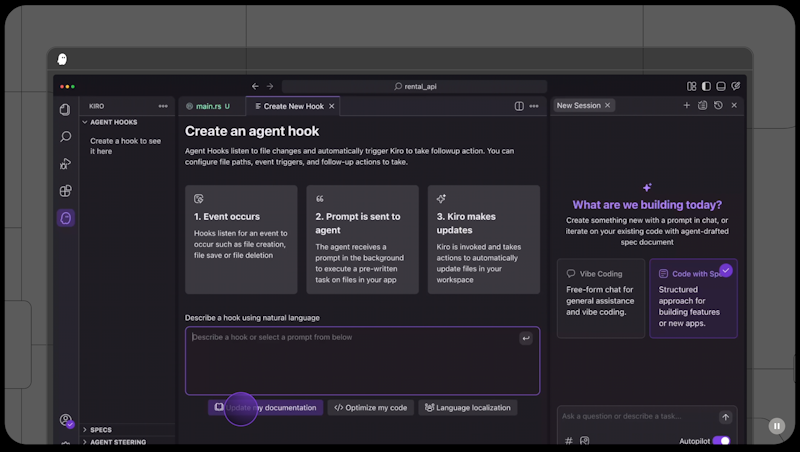 Kiro IDE通过AI智能体与开发者进行深度协作,在编写代码前自动生成结构化的需求文档、系统设计图和任务清单,并基于这些规范自动生成代码、测试用例和文档,实现从概念到可用代码的高效转变。它基于Code OSS构建,完美兼容VS Code的扩展、主题和设置,让开发者可以无缝迁移现有的工作流程,同时与AWS服务深度集成,为企业级开发提供强大的云原生支持。