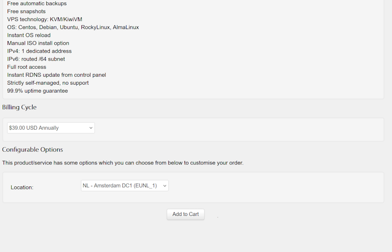 这里我们可以看到配置套餐,这里只有一个荷兰机房。