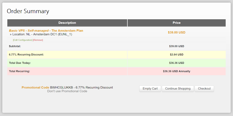 这里我们还需要用 BWHCGLUKKB 优惠码折扣后大约36美元一年。