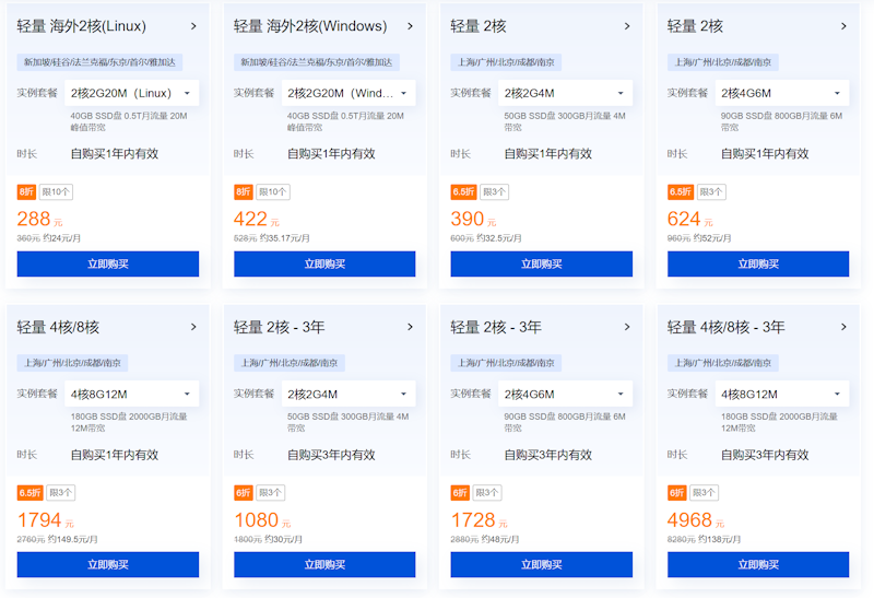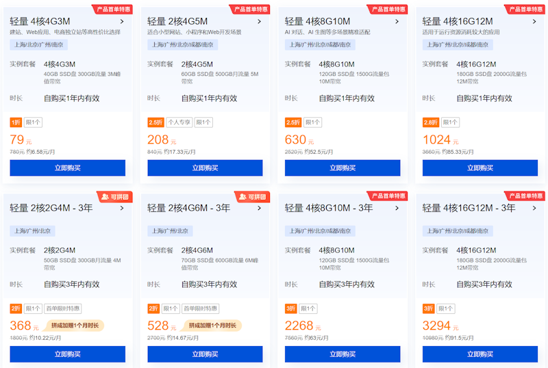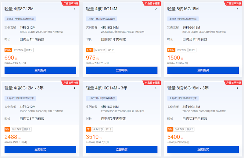 这里的套餐适合企业用户首单特惠的,当然企业账户之前没有买过轻量服务器的。