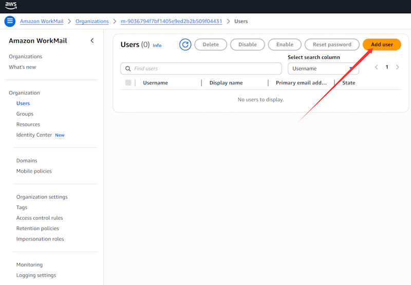 创建之后,我们等待几十秒后可以看到当前新创建的WorkMail 组织已经 Active激活成功。