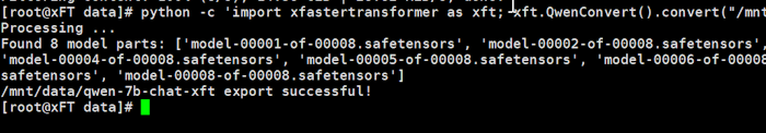 python -c 'import xfastertransformer as xft; xft.QwenConvert().convert("/mnt/data/qwen-7b-chat")'