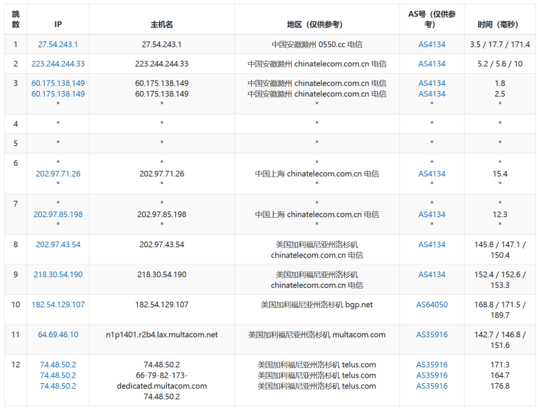 可以看到,三网均是直连的,稳定性也是比较高。如果需要多IP站群美国服务器的,可以选择。