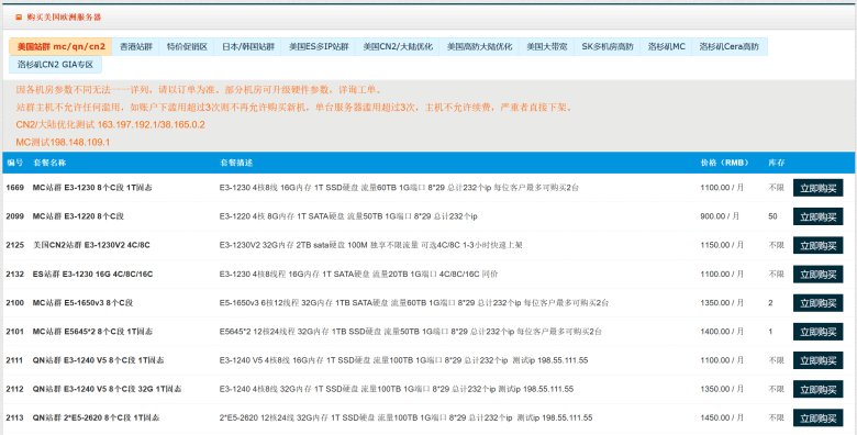 其中主推的这款MC机房站群服务器,E3-1220 8C段的每月900元,还是比较有性价比的(选择套餐)。