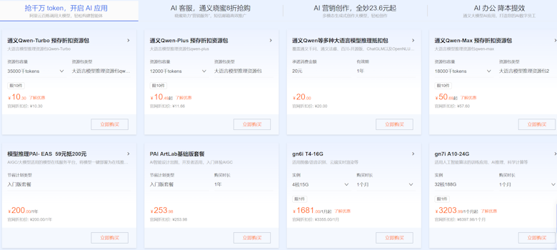 这次阿里云的活动较多还是模型包,如果有用到AI模型的阿里模型还是不错的。