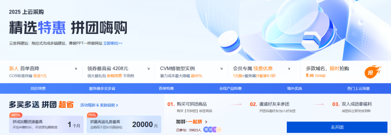 以前我们要参加国内云服务商的活动,都要想着办法找新账号。如今各大服务商也开始不这么嚣张的对于老客也有福利优惠的。当然如果我们有新客资格会更有折扣的。这里腾讯云服务商虽然没有说618的活动开始,但是拼团活动力度还是不错的,比如新客三年528元的轻量服务器,老客也有一次的机会入手低价的轻量服务器。
