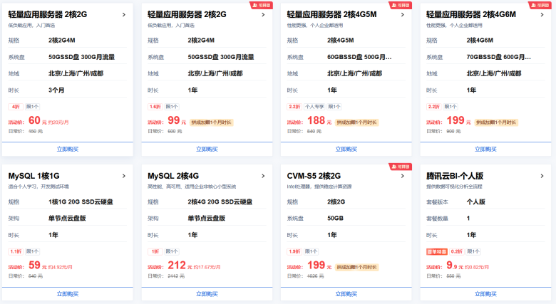 如果都不符合的话,那这个适合老客复购的活动,比日常是便宜一些的。当然最好你是能找到合适的账号,比如有朋友借用其他账号就可以搞定2台199的服务器。