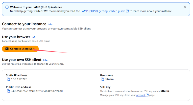 后面,我们可以参考 AWS Cloud的 Bitnami LAMP 进行LAMP环境的部署网站或者应用。
