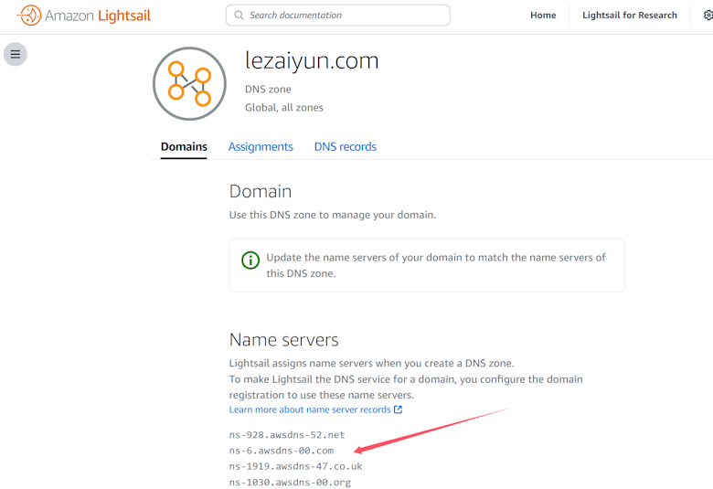 添加绑定域名后,我们可以根据提示要在域名DNS更换DNS。