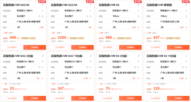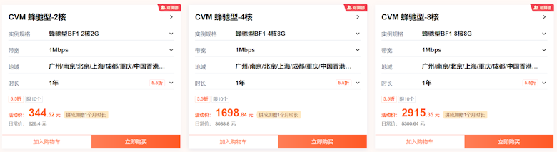 也有支持新老客户选择的CVM蜂驰型服务器。